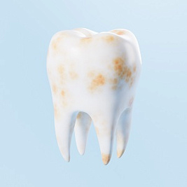Главный симптом — видимое изменение цвета зубов. Пациенты отмечают появление коричневых, желтых, серых или черных пятен. Белые пятна на эмали часто свидетельствуют о деминерализации и могут предшествовать окрашиванию.
