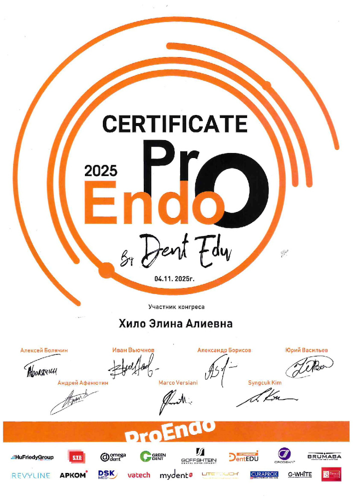 Элина Алиевна в качестве врача стоматолога-терапевта выполняет терапевтический прием пациентов в полном объеме: