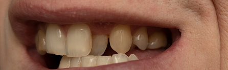 Неправильное расположение возникает в результате нарушения направления роста зубного зачатка или из-за нехватки места в ряду. Внешне дистопированный зуб может заметно выступать за границы соседних элементов, перекрывать их или прорезываться под углом. Подобное смещение нарушает контакт с антагонистами, что негативно влияет на жевательную функцию и может привести к преждевременному стиранию коронок соседних зубов.